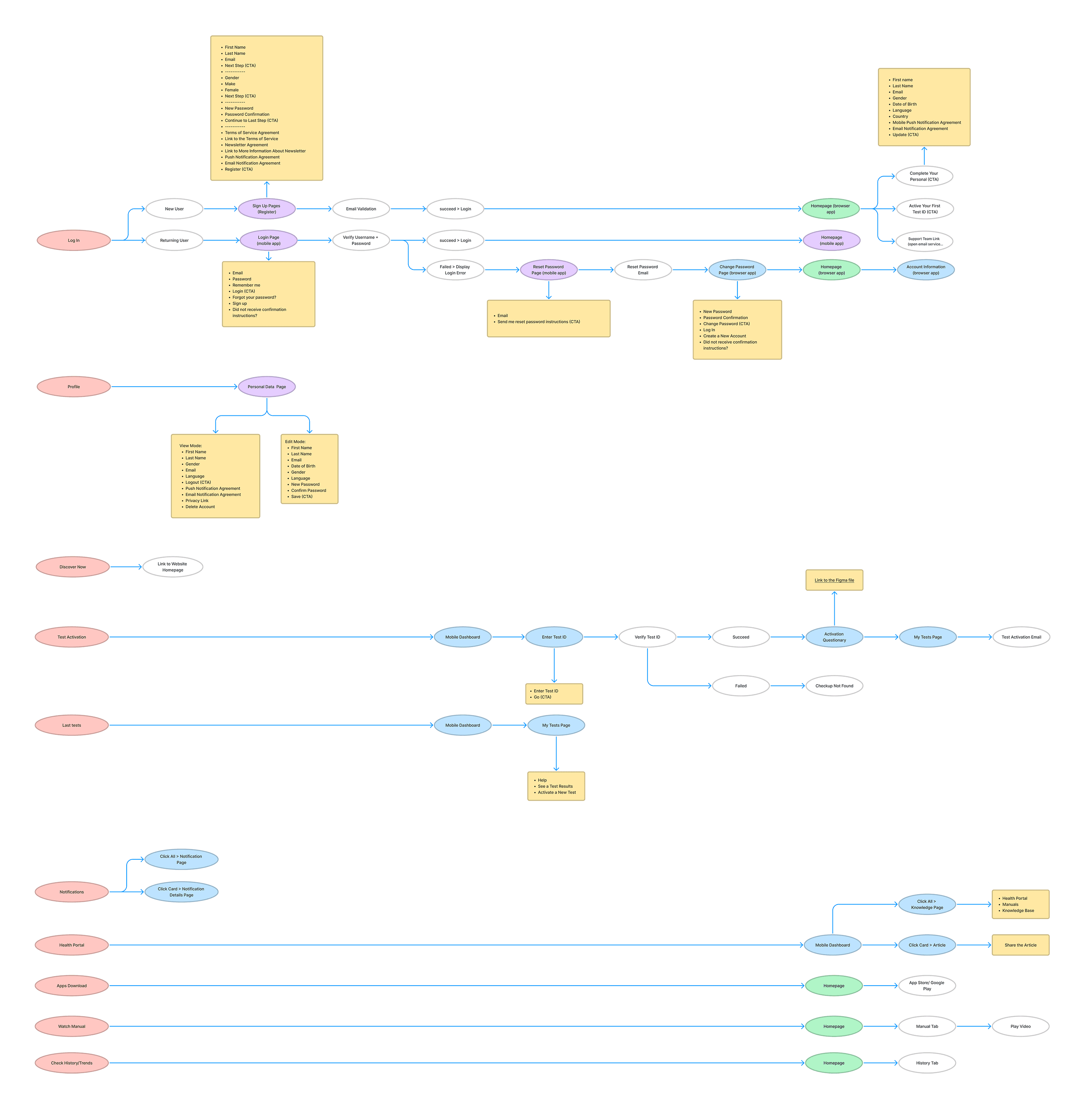 I mapped out existing and new user flows for core features such as AI consultant, wearable integration, product catalog, and payment processes. These flows were discussed with the development team to ensure technical feasibility.