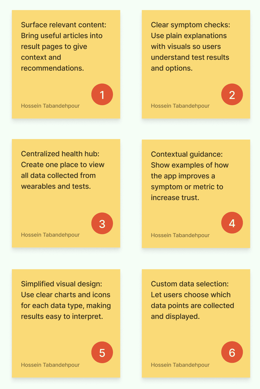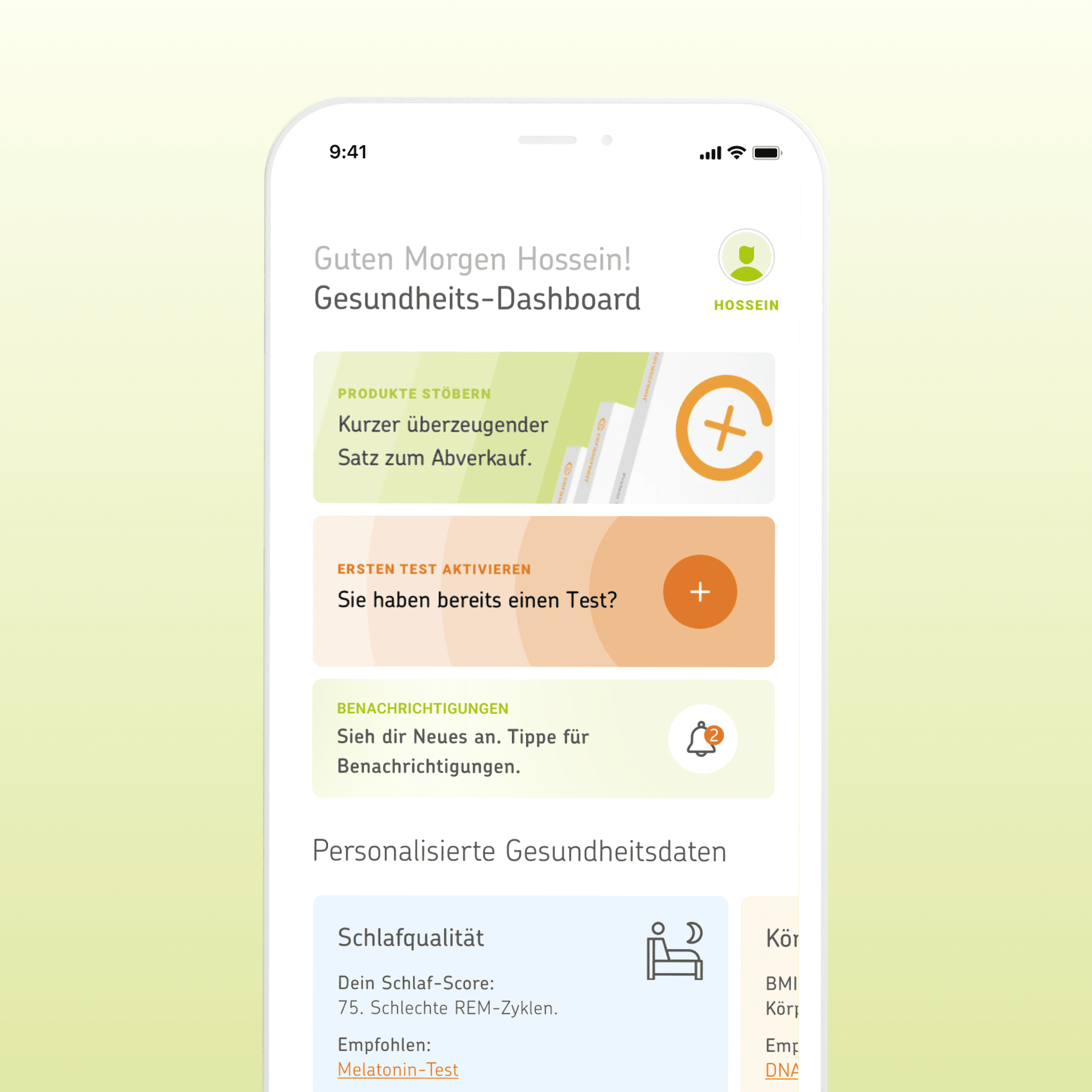 Designed a guided AI-assisted discovery flow to help users explore symptoms and understand relevant diagnostic options. The feature improved orientation, reduced uncertainty, and supported more informed product decisions by combining categorized overviews, personalized insights, and transparent guidance.