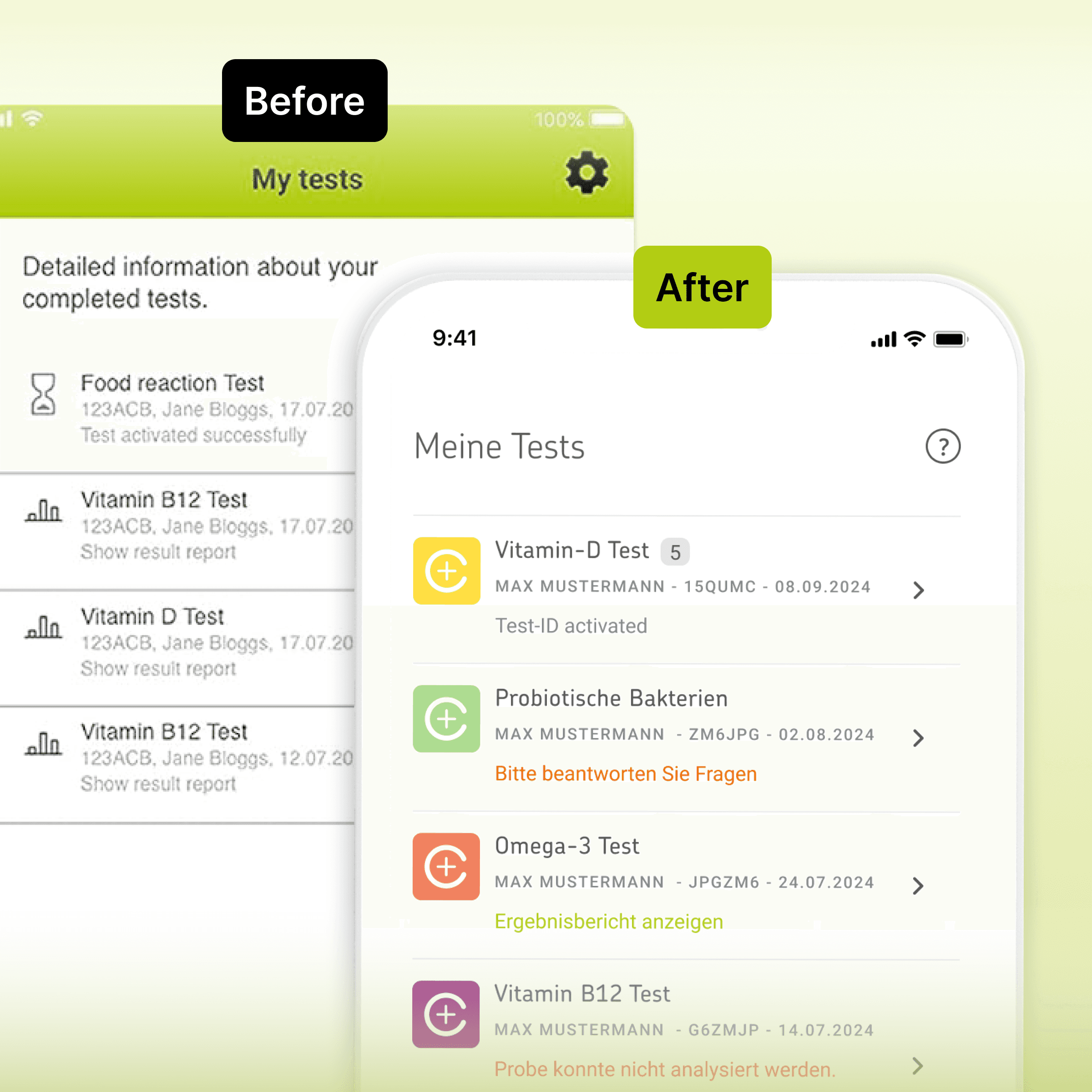 To support a growing product ecosystem, I redefined core user flows and established scalable design foundations across onboarding, testing, and result management. By aligning components and interaction patterns across mobile, web, and reports, the redesign improved consistency, reduced cognitive load, and enabled faster iteration for future product features.